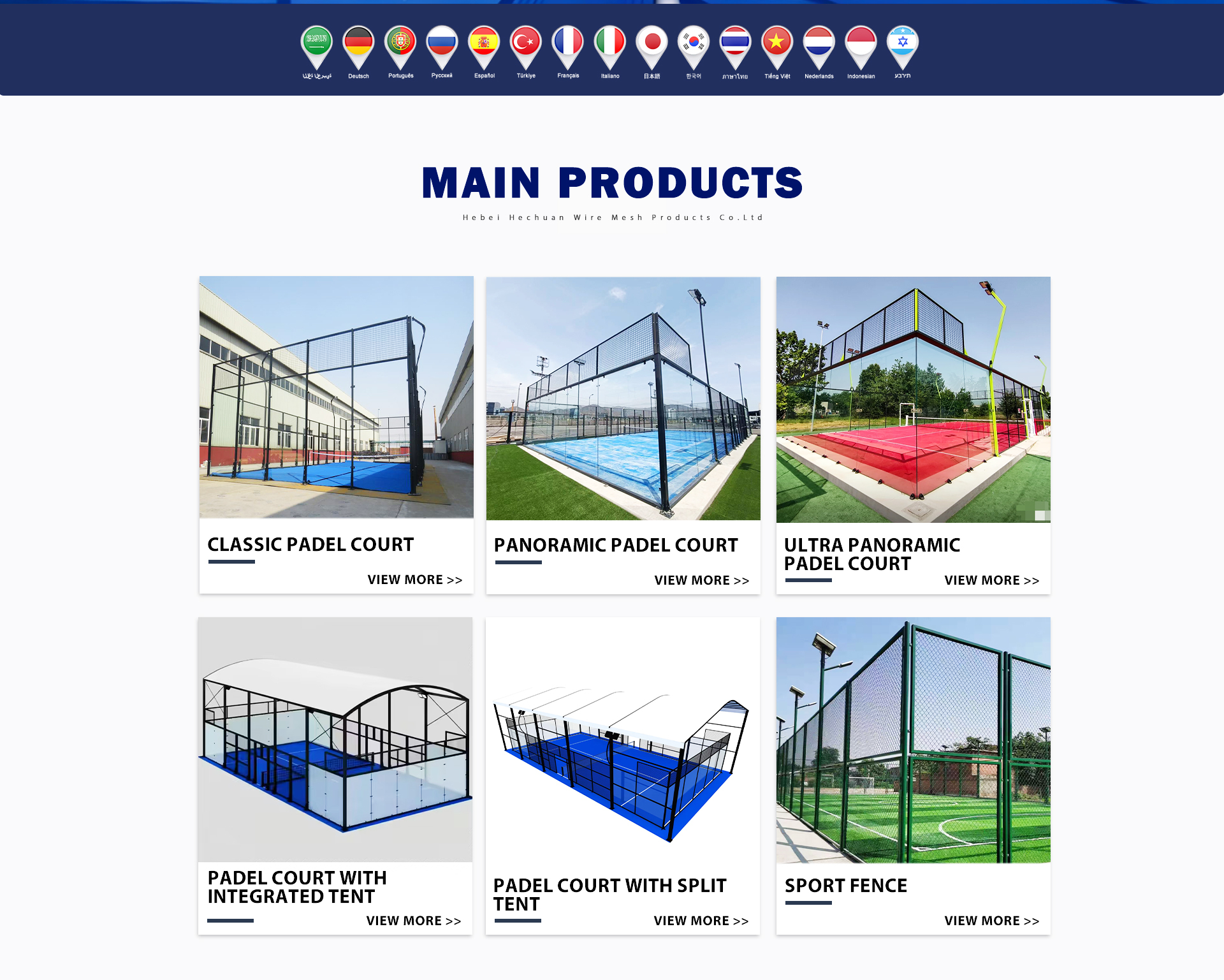 Productos principales:Pista de pádel, pista de pádel con techo, cerca de tierra deportiva, cerca de campo deportivo, máquinas de malla de alambre
